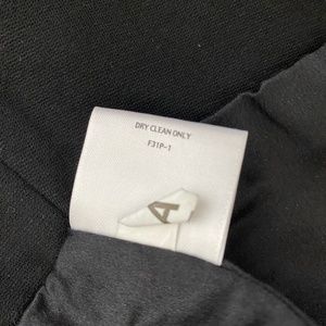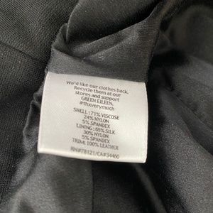 Eileen Fisher Jacket with leather trim, hook eye front closure, lightly padded shoulders and lined in a beautiful silk blend.