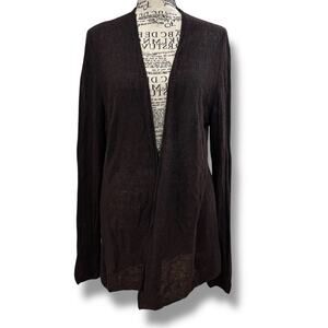 Eileen Fisher Size M Brown 100% Organic Linen Open Front Cardigan Sweater