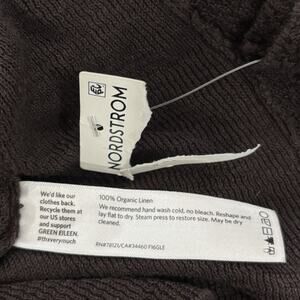 The product is a stylish and versatile Eileen Fisher brown organic linen open front cardigan sweater in size M. This long sleeve sweater features a solid pattern and knit fabric type, perfect for a comfortable and chic look. The open front design adds a touch of sophistication to the classic cardigan style, making it a versatile addition to any woman's wardrobe. Made from 100% organic linen, this sweater is not only fashionable but also environmentally friendly.