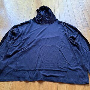 Eileen Fisher Size M Navy Blue Oversized Velvet Trim Hoodie Sweatshirt Pullover