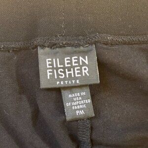 The Eileen Fisher Size Petite M Straight Pant in Black Capri is a stylish and versatile addition to any woman's wardrobe. Made in the USA with an elastic waist for comfort, these pants feature a pull-on closure and a flat front design. The mid-rise and straight leg fit offers a flattering silhouette, perfect for casual occasions in the winter, fall, or spring seasons. This chic and contemporary piece from Eileen Fisher is a must-have for petite women looking for a high-quality and fashionable pant option. Material Tag Missing & Unknown Material. Super Soft & Excellent Condition! 32" Waist. 10" Rise. 28.5" Inseam. 8" Pant Opening Hem.