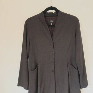 Eileen Fisher Size S Brown Italian Fabric Wool Button-Front Long Blazer Jacket