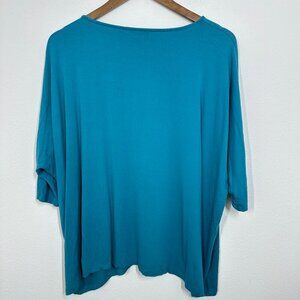 Eileen Fisher Size Small Teal Blue Dolman Sleeve Relaxed Fit Jersey Stretch