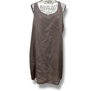 Eileen Fisher Size XL Brown 100% Silk Chiffon 2-Layer Dress Oversized Lagenlook