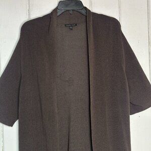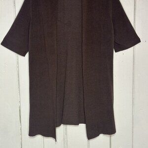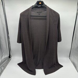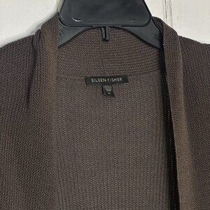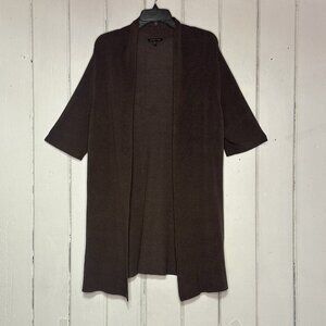 Eileen Fisher Size XL Brown Cotton Silk Knit Short Sleeve Open Cardigan Sweater