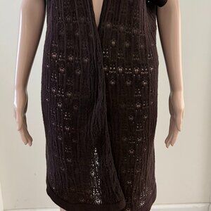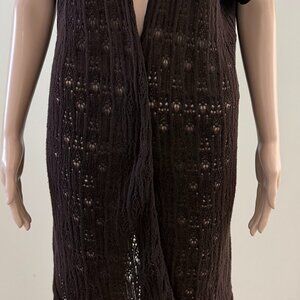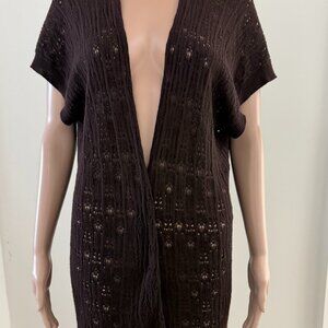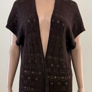 Eileen Fisher Size XL Cardigan 100% Wool Crochet Lace Open Front Brown.