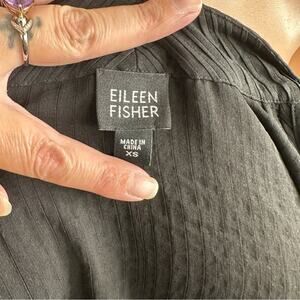 Eileen Fisher Size XS Silk Textured Open Front Jacket Lightweight Pockets Collar