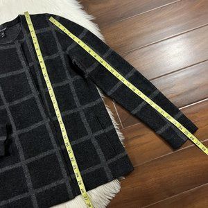Eileen Fisher Size XS Windowpane Plaid Merino Wool Open Front Cardigan Sweater