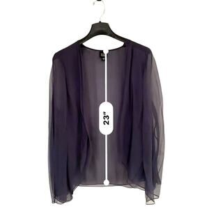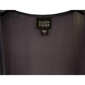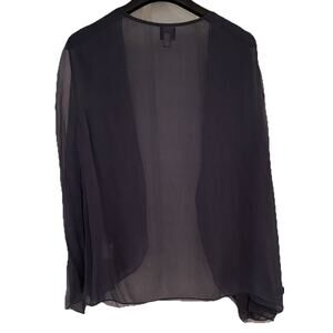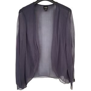Eileen Fisher Slate Blue Gray Sheer 100% Silk Drape Open Front Cardigan Large