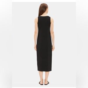 Eileen Fisher Sleeveless Crossover Stretchy Midi Length Black Shift Dress, XS