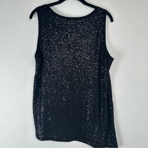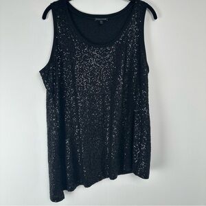 Elevate your wardrobe with this stunning Eileen Fisher sleeveless top. Crafted from lightweight silk material, this tank top features a beautiful black color with sequin accents and an asymmetrical design that adds a touch of sophistication to any outfit. Perfect for any occasion, whether it's a party, cocktail, or even for business, this top is a must-have for any fashion-forward woman.