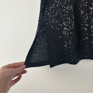 Eileen Fisher Sleeveless Top Size Medium Black Silk Sequin Asymmetrical Party