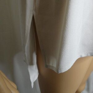 Beautiful ivory tank/shell. Feels like silk, but no material/interior tag to confirm. It has a loose/pulled thread but is overall in excellent condition.
