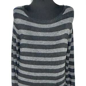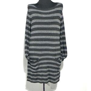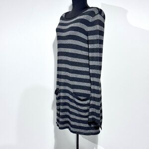 Eileen Fisher Small Black Gray Striped Long Sleeve Cozy Tunic Dress W/Pockets