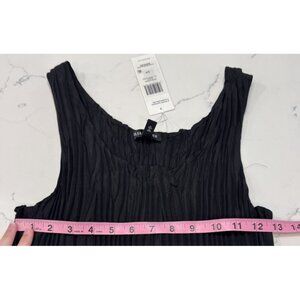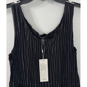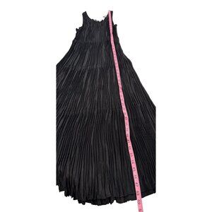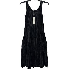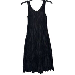 Eileen Fisher Small Crushed Cupro Scoop Neck F/L Tiered Dress Black NWT $378
