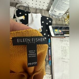 Eileen Fisher Small P Womens Sweater Linen Knit Relaxed Lightweight Mustard