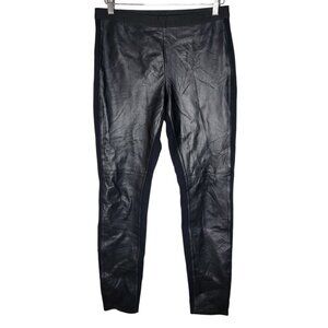 Eileen Fisher Small Pants Leather Ponte Pull On Slim Black Stretch Elastic