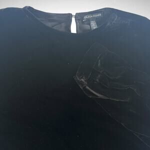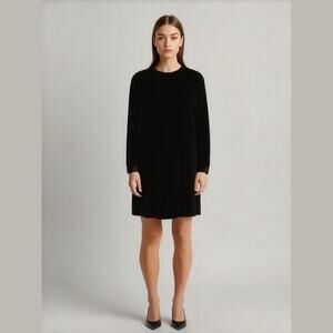 Eileen Fisher Small System Long Sleeve Knee Length Dress Black Velvet Silk Blend
