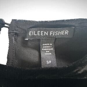 Eileen Fisher Size S System Long Sleeve Knee Length Dress Black Velvet Silk Blend
