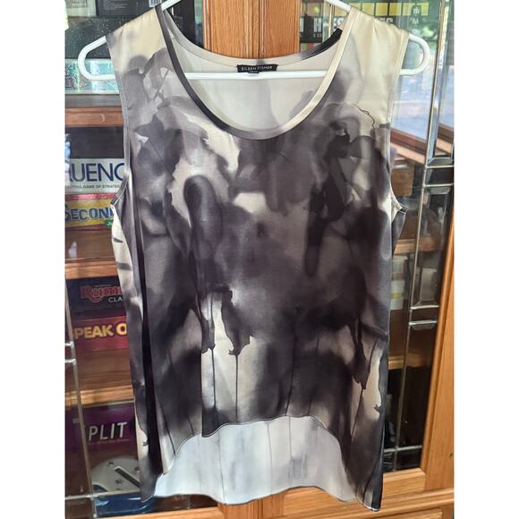 Ladies Eileen Fisher Gray Watercolor Sleeveless Tank Blouse