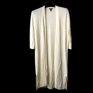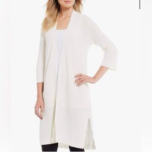 Eileen Fisher Soft White Organic Linen Textured Stretch Long Cardigan L Relaxed