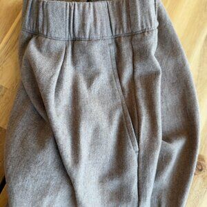 Eileen Fisher Soft Wool Flannel Pleated Tapered Pant S Tan