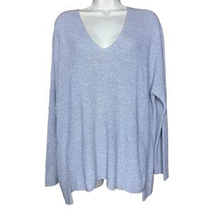 Eileen Fisher Sparkle Merino Wool V Neck Boxy Sweater in Grey NWT Size XL