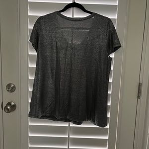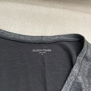 As an inexperienced photograher, I was unable to show the true color of this top. It is really a light silver....not dark grey or black. If you are interested in it, please make me an offer.