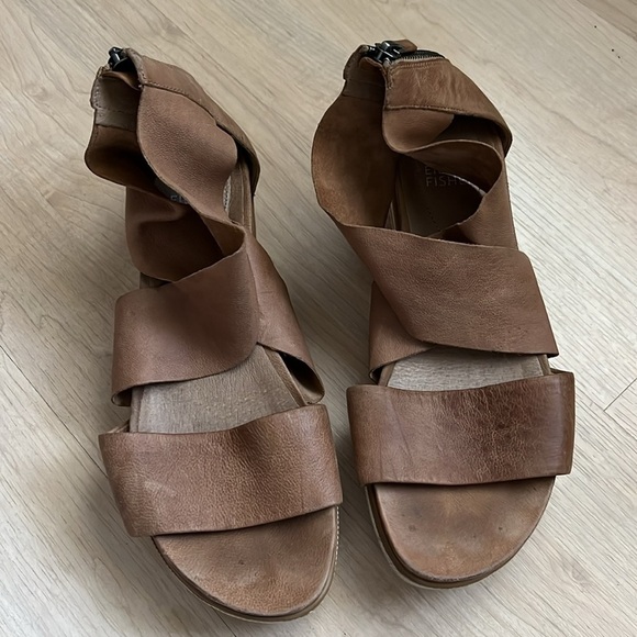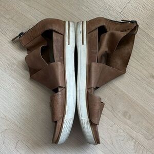 Eileen Fisher Sport Leather Sandal Sneaker Open Toe Strappy 7 Zipper Neutral