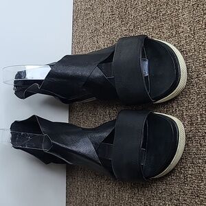 Eileen Fisher Sport Platform Black Leather Sandals Strappy sz 8