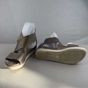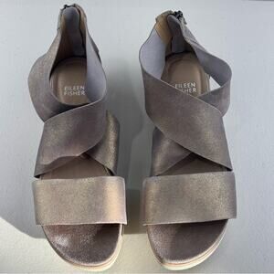 Eileen Fisher Sport Platform Sandal Women’s Size 9 Sporty-Chic Sneakers Inspired Gray Gold Metallic