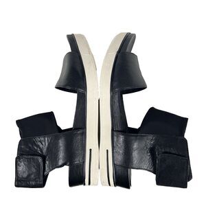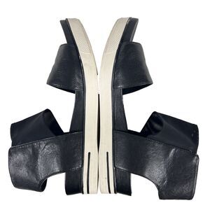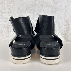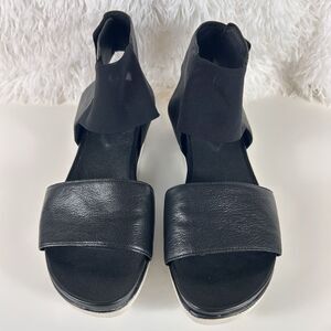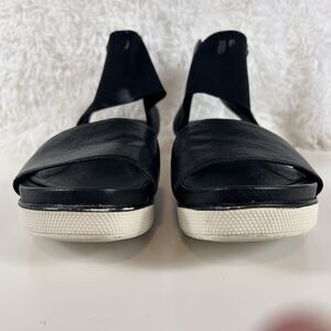 Eileen Fisher Spree Sandal 9 1/2 Black Leather Flat Stretch Strap Closet Staple