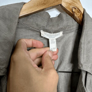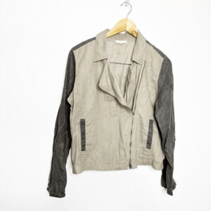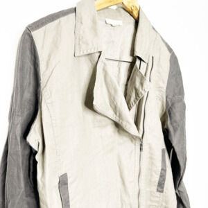 Eileen Fisher Stone Coated Organic Linen Colorblock Asymmetric Jacket PETITE L