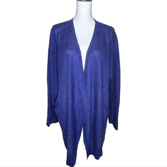 Eileen Fisher Straight Cardigan Fine Gauge Linen Sapphire Blue 2X