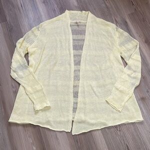 Eileen Fisher Straight Linen Open Cardigan Daisy Pale yellow Loose weave Size M