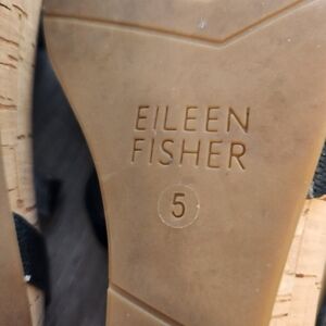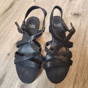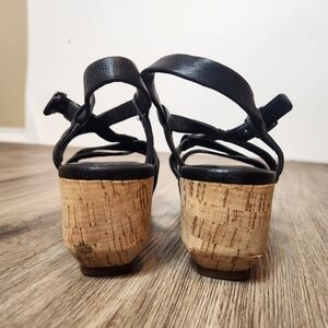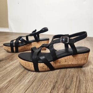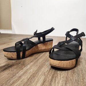 Eileen Fisher Strappy Black Cork Wedges in Size 5