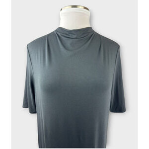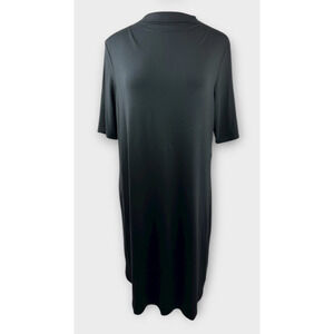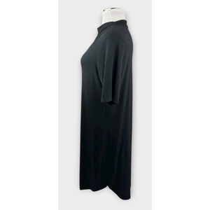 Eileen Fisher Stretch Jersey Knit Mock Neck Dress Midi Half Sleeve Black Size XL