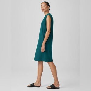 Eileen Fisher Stretch Jersey Round Neck Dress Easy Fit, Knee Length Side Zippers