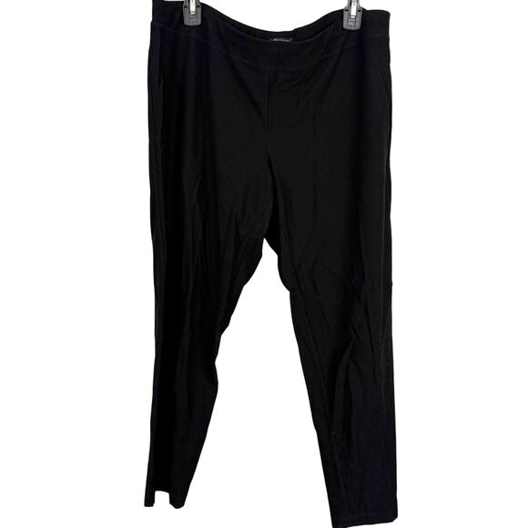 Eileen Fisher Stretch Knit Crepe Stretch Pull On Elastic Waist Black Pants sz L