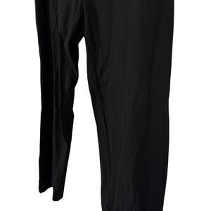 These Eileen Fisher Stretch Knit Crepe Stretch Pull On Elastic Waist Black Pants in size L are versatile for both casual and business occasions. Made with a knit fabric that offers a comfortable stretch, these pants feature a mid-rise elastic waist for easy wear. With a classic black color and straight leg style, these dress pants are perfect for all seasons and can be machine washed for convenient care. The high-quality material of nylon and viscose ensures durability, making these pants a stylish and practical addition to any wardrobe.