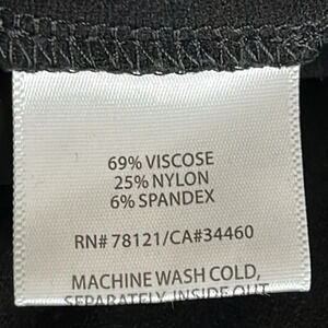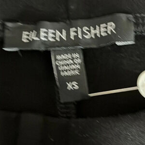 Eileen Fisher Stretch Knit Pull On Straight Leg.Pants in Black - Size XS. Excellent pre-owned condition. Basic black pull on pants, stretch knit, stretch waist, straight leg. 69% viscose, 25" nylon, 6% spandex. Approximate measurements: 14" waist, 8 1/2" rise, 28 1/2" inseam.