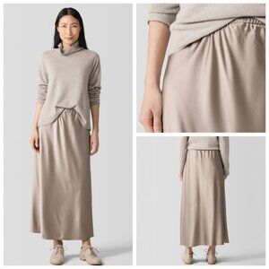 Eileen Fisher Stretch Silk Charmeuse Bias Skirt Dove L