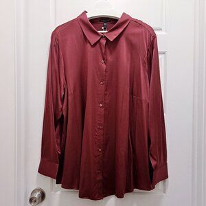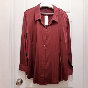 Eileen Fisher Stretch Silk Charmeuse Classic Collar Shirt Size 2X