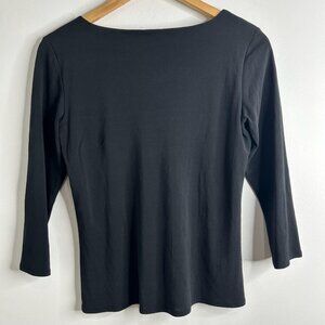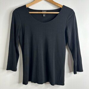 Eileen Fisher Stretchy Silk Top Womens XS Black Scoop Neck 3/4 Sleeve Minimalist