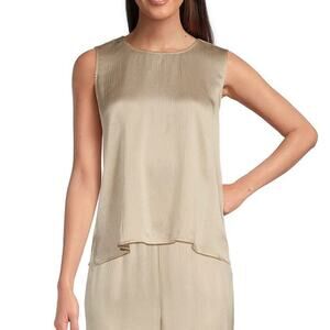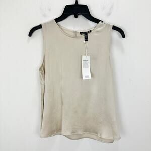Eileen Fisher Striated Silk Satin Shell Top Almond Beige Round Neck XXS NWT.