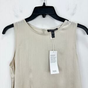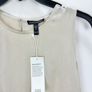 Eileen Fisher Striated Silk Satin Shell Top Almond Beige Round Neck XXS NWT