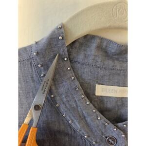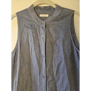 Eileen Fisher Studded Tunic Top Womens S Chambray Sleeveless Blue Lightweight