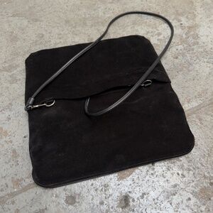 Eileen Fisher Suede Leather Foldover Crossbody Clutch Black Shoulder Bag