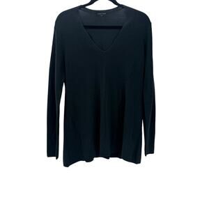 Eileen Fisher Superfine Merino V-Neck Tunic Top in Long Sleeve Green Size S