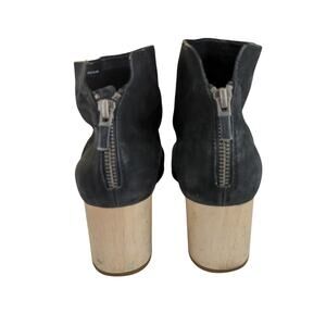 Eileen Fisher Suri Tumbled Nubuck Bootie Black Leather Ankle Boots Block Heel Wooden Women's Size 9
